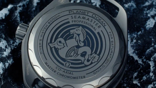 旋入式的表底盖也采用了喷砂钛合金材质,为了实现6000米的防水,这枚腕表没有做背透设计,但欧米茄非常贴心地采用了激光雕刻技术,不仅雕出了漂亮海马造型,而且还写上了不同字样,每行话都可以找到相对应的解释。