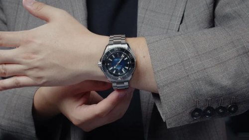 虽然工具属性有点强,但这枚腕表的颜值在线,比如我手上这枚黑色表圈配的是渐变蓝色的盘面,Seamaster和Ultra Deep字样,以及秒针的尖端采用了非常醒目的亮蓝色造型。