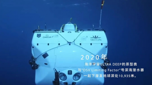 到了2020年,探险家维克多·维斯科沃带着Ultra Deep专业潜水表下潜至马里亚纳海沟最底部,见证了人类深潜世界纪录10935米的诞生。这枚防水深度可达15000米的Ultra Deep潜水表,开创了专业潜水表的行业标杆。而它也成为了现在欧米茄这枚6000米下潜能力腕表的前身。